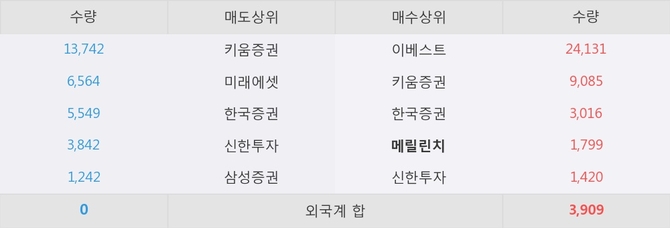 메릴린치가 매수상위 창구 4위를 기록중이고, 그 외에 이베스트, 키움증권 등이 매수 창구 상위에 위치하고 있다.