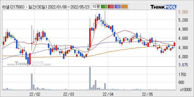 러셀의 2021년 매출액은 476억으로 전년대비 63.4% 상승했고, 영업이익 또한 58억으로 전년대비 78.6% 상승했다. 이 회사의 매출액 증감률과 영업이익 증감률은 각각 코스닥 상위 9%, 상위 24%에 해당된다.