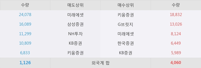 거래원 동향은 미래에셋, 삼성증권, NH투자 등이 매도 상위 목록에 나타나고 있다.