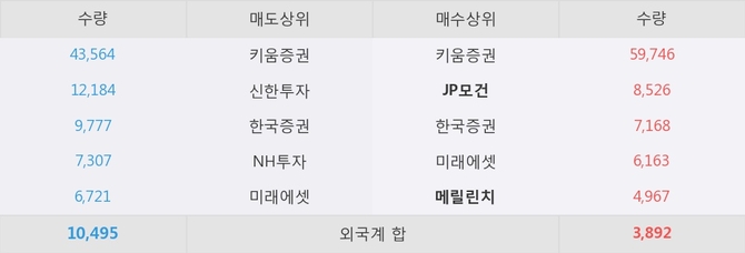 거래원 동향은 JP모건, 메릴린치, 미래에셋 등이 매수 상위 목록에 위치하고 있다.
