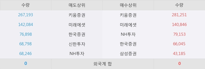거래원 동향은 미래에셋, NH투자, 삼성증권 등이 매수 상위 목록에 나타나고 있다.