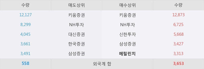 거래원 동향은 메릴린치, NH투자, 삼성증권 등이 매수 상위 목록에 나타나고 있다.