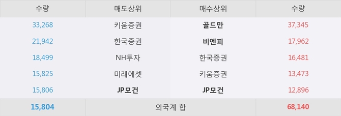 매수 창구 상위에 골드만, 비엔피 등 외국계 증권사가 포진해 있어 외국인 매수세가 유입되고 있는 것으로 풀이된다. 한편, 매도 창구 상위에는 JP모건이 눈에 띄고 있다.