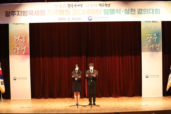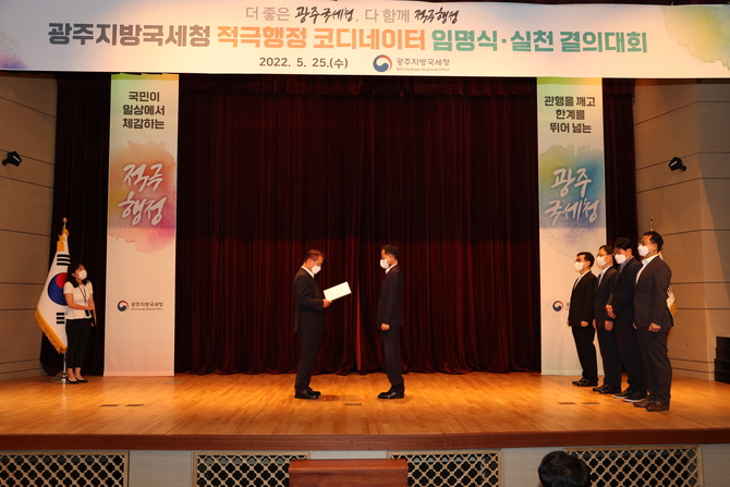 (조세금융신문=고승주 기자) 광주지방국세청이 25일 적극행정 코디네이터 임명 및 적극행정 실천 결의대회를 열었다.