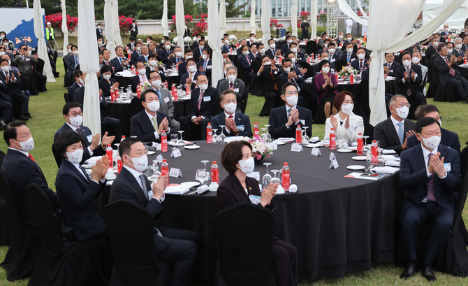 윤석열 대통령과 정부 관계자, 중소기업 유관단체, 중소기업 유공자 등 550여명이 참석한 이날 행사는 새 정부 출범 후 용산 대통령실 앞에서 열린 첫 행사로, 5대 그룹 총수도 참여해 대기업과 중소기업의 상생 의지를 다졌다.