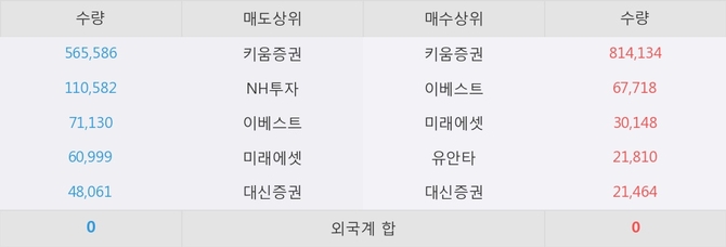 이 시각 주요 거래원은 미래에셋, 키움증권, 이베스트 등이 매수 상위 창구에 자리하고 있다.