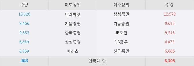 거래원 동향은 JP모건, 삼성증권이 매수 상위 목록에 나타나고 있다.