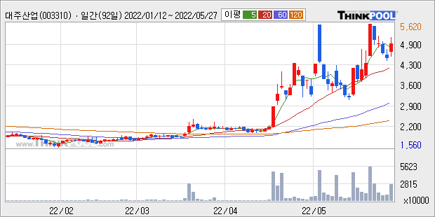 대주산업은 2021년 매출액 844억원과 영업이익 26억원을 기록했다. 전년대비 매출은 -0.9%, 영업이익은 -40.7% 각각 하락했다. 이 회사의 매출액 증감률과 영업이익 증감률은 각각 코스닥 하위 26%, 하위 25%에 해당된다.