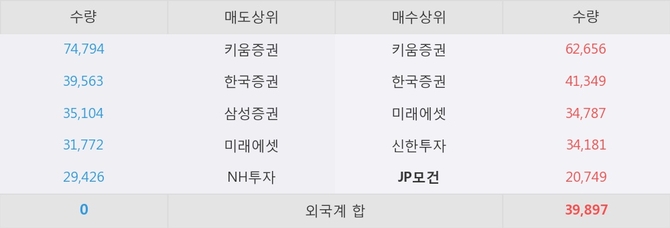거래원 동향은 JP모건, 미래에셋이 매수 상위 목록에 나타나고 있다.