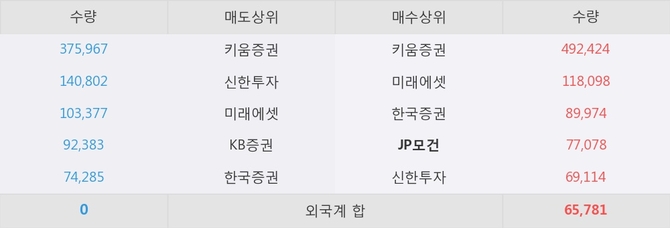 거래원 동향은 JP모건, 미래에셋이 매수 상위 목록에 나타나고 있다.