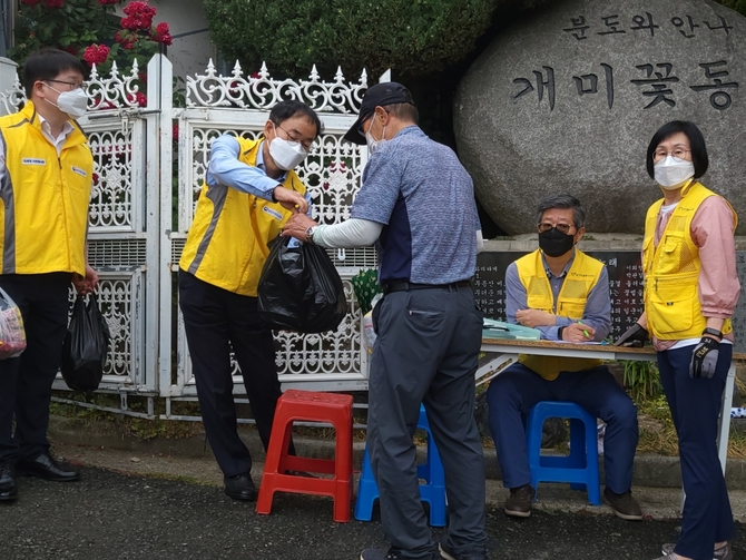 동시에 주변의 어려운 어르신들에게 도시락을 전달하는 사랑의 도시락 나눔에도 참여했다.