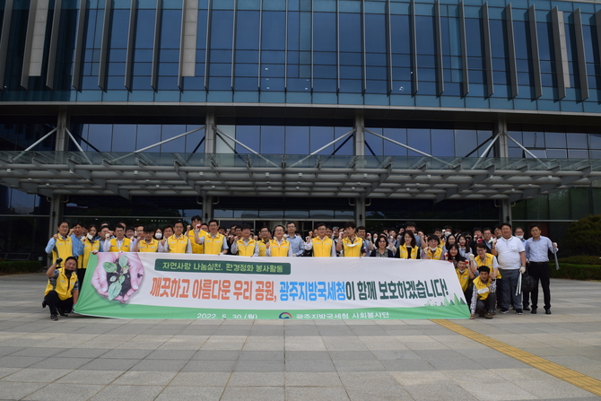 (조세금융신문=고승주 기자) 광주지방국세청(청장 이판식)이 30일 정부광주합동청사 주변과 인근 첨단체육공원, 쌍암공원, 대상공원 등 4개 권역에 대한 클린환경 조성 행사를 열었다.
