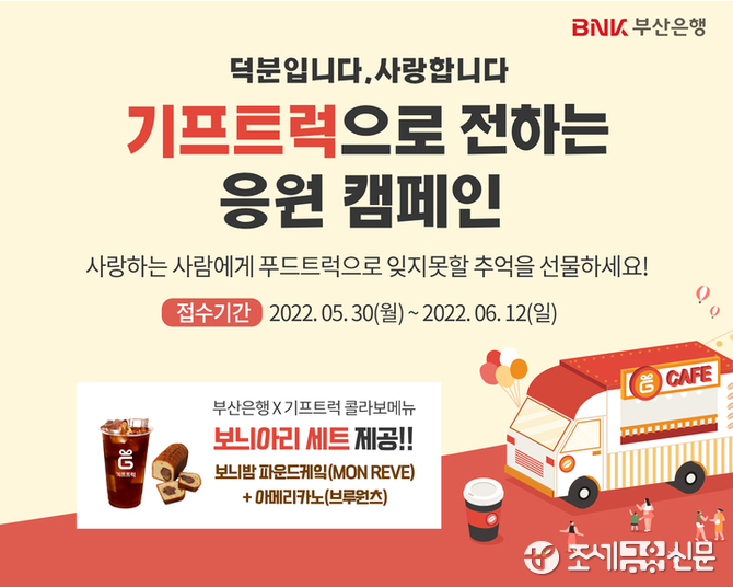 (조세금융신문=진민경 기자) BNK부산은행이 모바일뱅킹 라이프 ‘기프트럭’ 오픈 기념 이벤트를 진행한다.