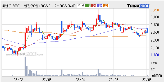 대현의 2021년 매출액은 2879억으로 전년대비 13.7% 상승했고, 영업이익 또한 224억으로 전년대비 214.3% 상승했다. 이 회사의 매출액 증감률과 영업이익 증감률은 각각 코스피 상위 49%, 상위 14%에 해당된다.