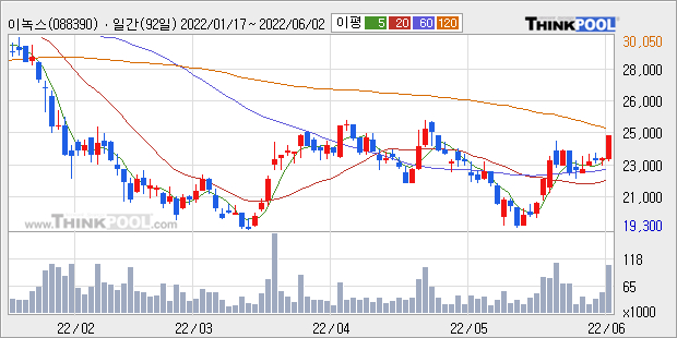 이녹스의 2021년 매출액은 751억으로 전년대비 38.2% 상승했고, 영업이익 또한 242억으로 전년대비 127.8% 상승했다. 이 회사의 매출액 증감률과 영업이익 증감률은 각각 코스닥 상위 20%, 상위 20%에 해당된다.