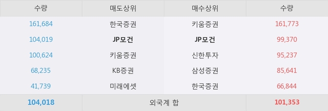 거래원 동향은 JP모건, 삼성증권이 매수 상위 목록에 나타나고 있다. 한편, 매도 창구 상위에는 JP모건이 눈에 띄고 있다.