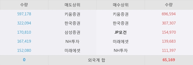 거래원 동향은 JP모건, 미래에셋, NH투자 등이 매수 상위 목록에 나타나고 있다.