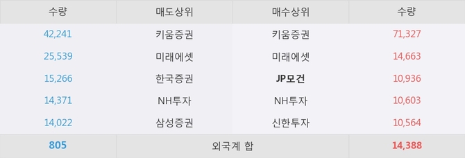 거래원 동향은 JP모건, 미래에셋, NH투자 등이 매수 상위 목록에 나타나고 있다.