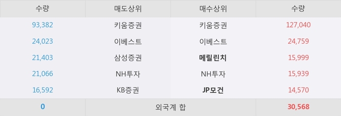 거래원 동향은 메릴린치, JP모건, NH투자 등이 매수 상위 목록에 위치하고 있다.