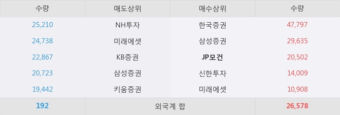 거래원 동향은 JP모건, 삼성증권, 미래에셋 등이 매수 상위 목록에 나타나고 있다.