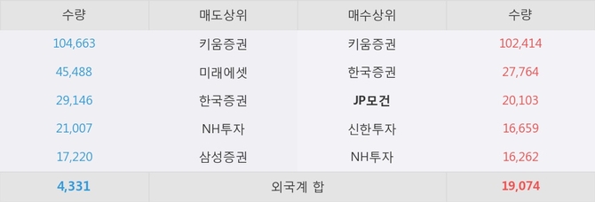 거래원 동향은 JP모건, NH투자가 매수 상위 목록에 나타나고 있다.
