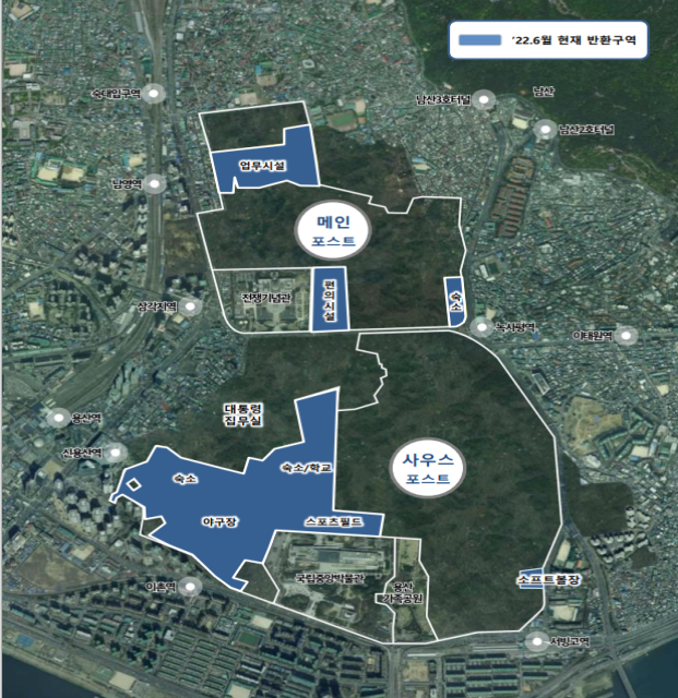 정부는 지난해 7월 한미 간 합의에 따라 올해 초까지 용산기지 약 50만㎡ 구역 반환을 추진해왔다. 지난 2월과 5월엔 총 53.3만㎡ 구역을 반환받았다.