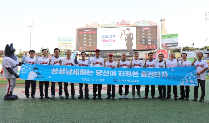 (조세금융신문=고승주 기자) 인천지방국세청이 지난 2일 인천SSG 랜더스필드 야구장에서 벌어진 2022 신한은행 SOL KBO리그 KT 위즈와 SSG 랜더스와의 경기에 모범납세자와 아름다운 납세자를 초청했다.