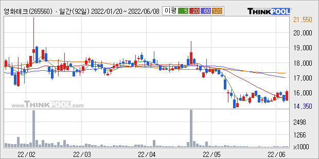 영화테크의 2021년 매출액은 406억으로 전년대비 15.9% 상승했고, 영업이익 또한 23억으로 전년대비 3,214.3% 상승했다. 이 회사의 매출액 증감률과 영업이익 증감률은 각각 코스닥 상위 46%, 상위 1%에 해당된다.