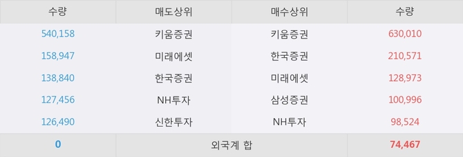 거래원 동향은 미래에셋, 삼성증권, NH투자 등이 매수 상위 목록에 나타나고 있다.