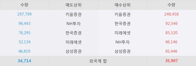 거래원 동향은 미래에셋, NH투자, 삼성증권 등이 매수 상위 목록에 나타나고 있다.