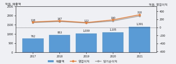 최근 3년간의 실적을 살펴보면 안정적 성장세를 보이고 있다. 최근 3년간 매출로 볼 때 매년 꾸준히 증가하고 있고 그 증가폭도 확대되고 있다.
