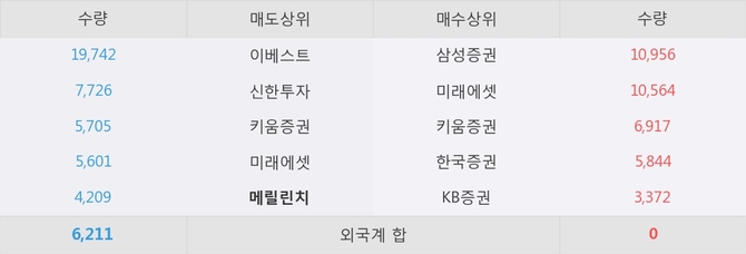 거래원 동향은 메릴린치, 미래에셋이 매도 상위 목록에 나타나고 있다.
