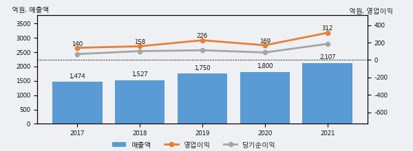 최근 3년간의 실적을 살펴보면 안정적 성장세를 보이고 있다. 최근 3년간 매출로 볼 때 매년 꾸준히 증가하고 있고 그 증가폭도 확대되고 있다.