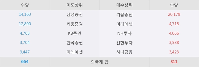 거래원 동향은 삼성증권, 미래에셋 등이 매도 상위 목록에 나타나고 있다.