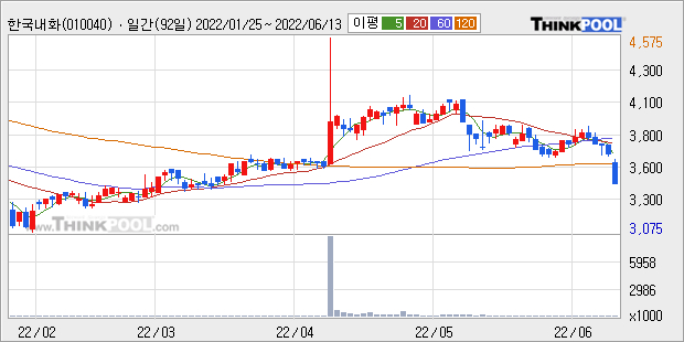 차트상 주가의 흐름은 역배열 구간에서 하락세가 이어지다가 반등이 나왔지만 오늘 다시 조정을 받는 모습이다. 이 종목의 차트에서 최근에 삼선전환도(음전환) 등을 확인할 수 있다