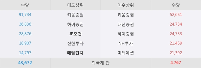현재 거래원 동향을 보면 JP모건과 메릴린치가 각각 순매도 상위 창구 3위와 5위를 기록하고 있다.