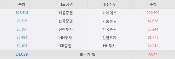 이 시각 주요 거래원은 NH투자, 키움증권, 한국증권 등이 매도 상위 창구에 자리하고 있다.