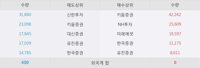 현재 거래원 동향은 신한투자, 키움증권, 대신증권 등이 매도 상위 목록에 나타나고 있다.