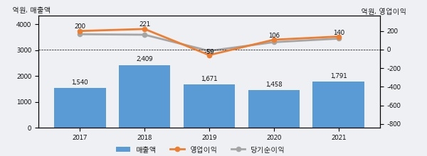 와이엠씨의 2021년 매출액은 1791억으로 전년대비 22.8% 상승했고, 영업이익 또한 140억으로 전년대비 32.1% 상승했다. 이 회사의 매출액 증감률과 영업이익 증감률은 각각 코스닥 상위 35%, 상위 44%에 해당된다.