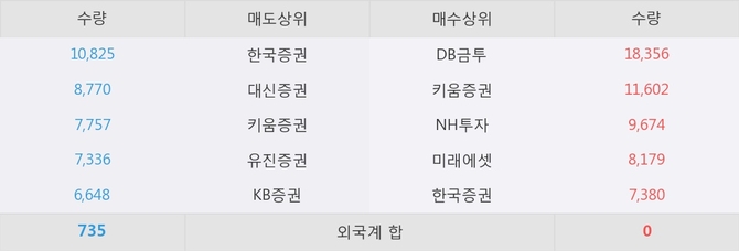 현재 거래원 동향은 한국증권, 대신증권, 키움증권 등이 매도 상위 목록에 나타나고 있다.