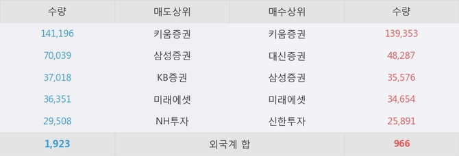 거래원 동향은 삼성증권, 미래에셋, NH투자 등이 매도 상위 목록에 나타나고 있다.