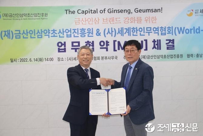 (조세금융신문=구재회 기자) 세계한인무역협회(월드옥타)와 금산인삼약초산업진흥원이 금산 인삼의 세계를 위해 손을 맞잡았다.