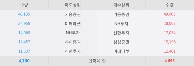 거래원 동향은 NH투자, 삼성증권, 미래에셋 등이 매수 상위 목록에 나타나고 있다.