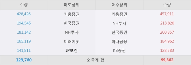 거래원 동향은 NH투자, 하나금융 등이 매수 상위 목록에 나타나고 있다. 한편, 매도 창구 상위에는 JP모건이 눈에 띄고 있다.