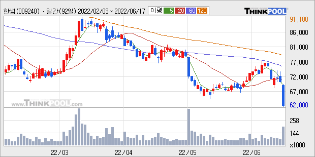 한샘의 2021년 매출액은 2조 2312억으로 전년대비 7.9% 상승했고, 영업이익은 693억으로 전년대비 -25.6% 하락했다. 이 회사의 매출액 증감률과 영업이익 증감률은 각각 코스피 하위 36%, 하위 24%에 해당된다.