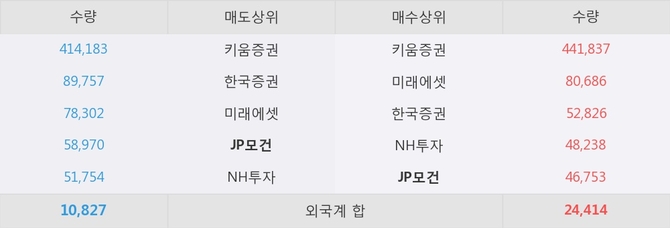 거래원 동향은 JP모건, 미래에셋, NH투자 등이 매수 상위 목록에 나타나고 있다. 한편, 매도 창구 상위에는 JP모건이 눈에 띄고 있다.