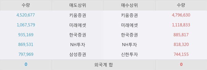 아직까지 외국계 증권사 창구를 통한 매매는 발생하지 않고 있다. 그리고 이 시간 미래에셋이 매수창구상위에 올라있는 종목은 이 종목 이외에도 에스엘, TRUE 인버스 2X 천연가스 선물 ETN(H) 등이 있다.