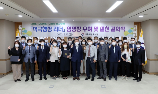 (조세금융신문=고승주 기자) 서울지방국세청(청장 임성빈)이 17일 적극행정 문화 정착을 선도할 적극행정 리더 28명에게 임명장을 수여하고 실천 다짐 결의식을 개최했다.