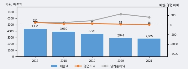 최근 3년간의 실적을 살펴보면, 매출액은 3년 연속 하락하고 있으나 그 하락폭은 줄어들고 있음을 알 수 있다.