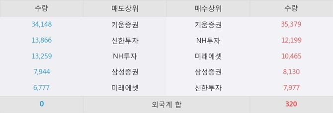 거래원 동향은 NH투자, 미래에셋, 삼성증권 등이 매수 상위 목록에 나타나고 있다.